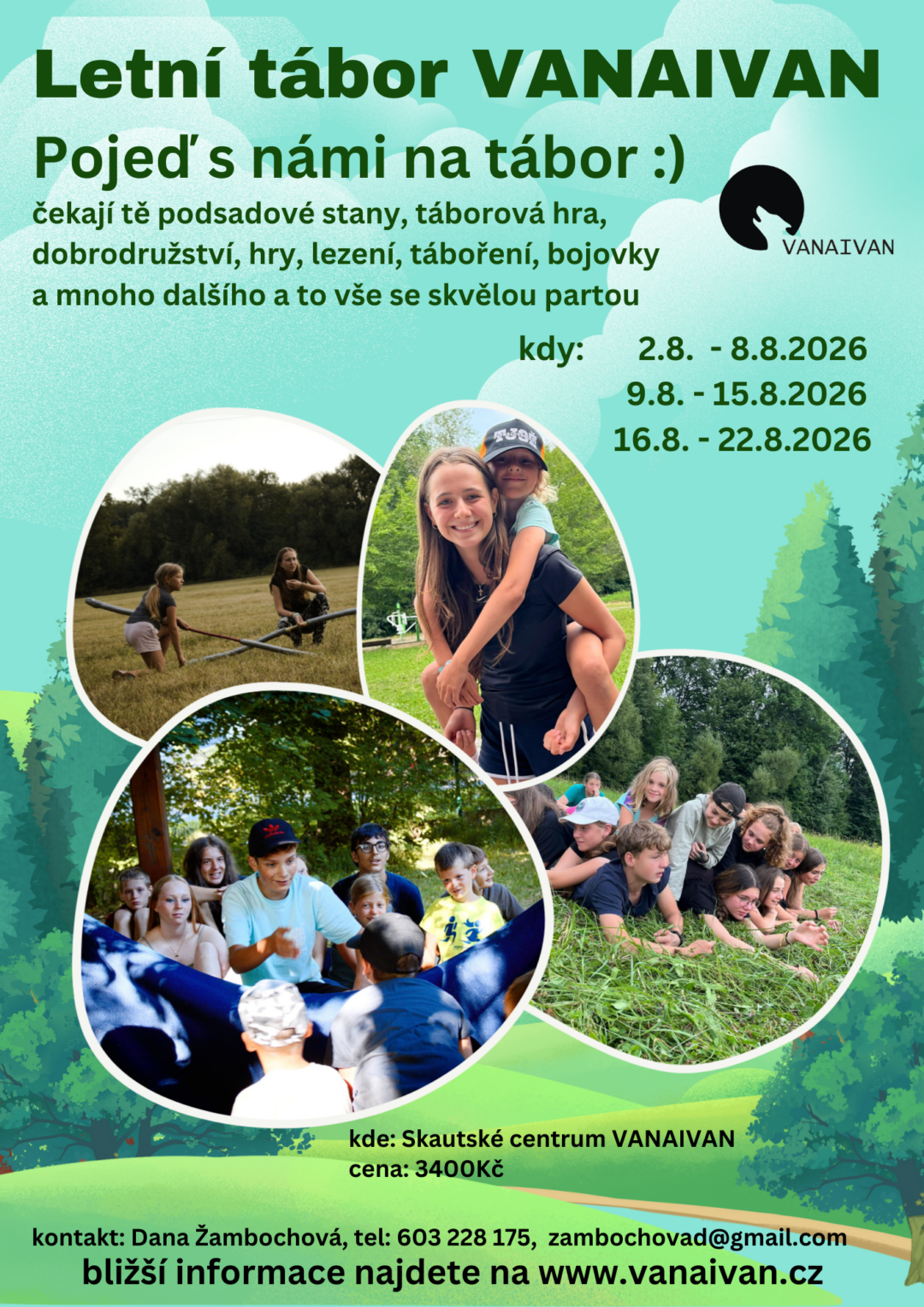 Tábory budou probíhat ve Skautském centru VANAIVAN od pondělí do pátku od 6:00 -16:00. Proč od 6:00 protože se snažíme vyjít vytříct i rodičům, kteří chodí do práce na dřívější čas. Děti se od 6:00 do 7:30 scházejí a teprve potom začíná společný program. Proto pokud nepotřebujete, můžete děti přivést až na 7:30.