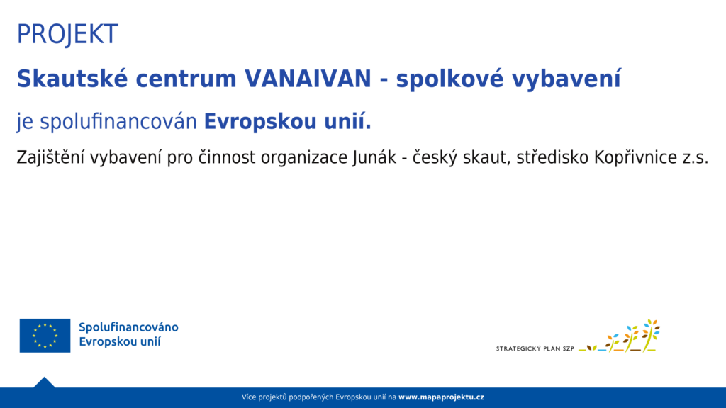 Výstavba Skautského centra Vanaivan a Areálu zdraví byla realizována díky podpoře Regionálního operačního programu Moravskoslezsko.